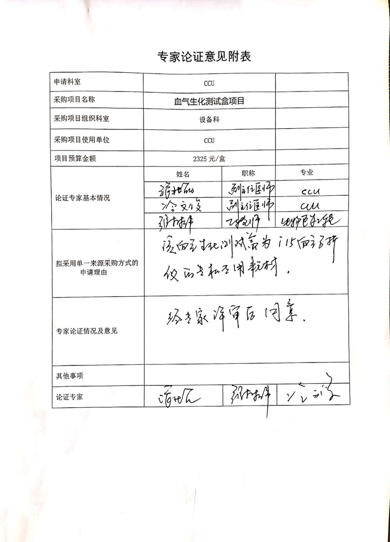 科室購置的血氣分析儀設(shè)備品牌為深圳市理邦精密儀器股份有限公司,需要購置與設(shè)備相匹配的血氣生化測試盒(專家論證意見表附后)。