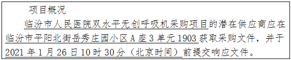 項(xiàng)目名稱:臨汾市人民醫(yī)院雙水平無(wú)創(chuàng)呼吸機(jī)采購(gòu)項(xiàng)目