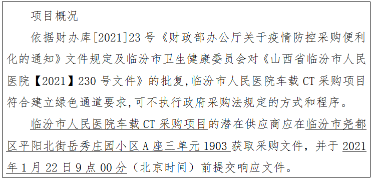 項(xiàng)目名稱:臨汾市人民醫(yī)院車載CT采購項(xiàng)目