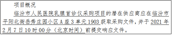 項目名稱:臨汾市人民醫(yī)院乳腺首診儀采購項目