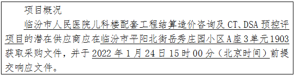 項目名稱:臨汾市人民醫(yī)院兒科樓配套工程結(jié)算造價咨詢及CT、DSA預(yù)控評項目