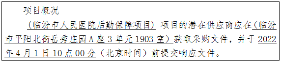 項(xiàng)目名稱:臨汾市人民醫(yī)院后勤保障項(xiàng)目