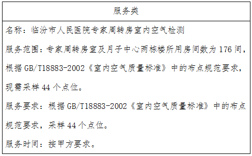 二、項(xiàng)目名稱:臨汾市人民醫(yī)院專(zhuān)家周轉(zhuǎn)房室內(nèi)空氣檢測(cè)項(xiàng)目