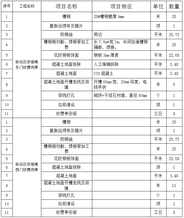 一、項目名稱:移動及安裝南東門、南西門收費亭