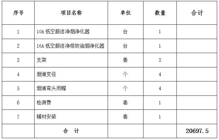 項(xiàng)目名稱:購置油煙凈化設(shè)備