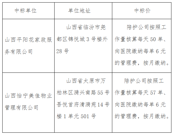 臨汾市人民醫(yī)院于2022年6月17日對遴選護工陪護公司項目組織了競爭性磋商采購,評審委員會依照磋商文件確定的標(biāo)準、辦法,進行了客觀公正的評定,現(xiàn)將最終的評定結(jié)果公告如下: