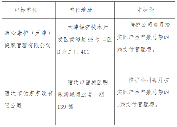 一、項目名稱:遴選護工陪護公司項目