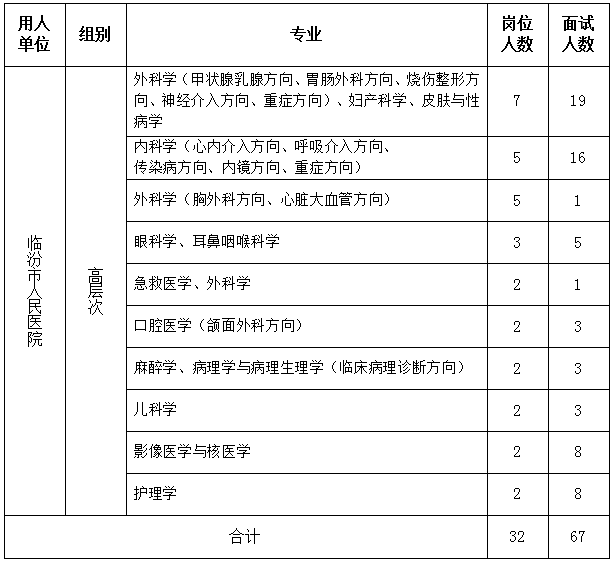 根據(jù)《事業(yè)單位人事管理條例》以及我省《關(guān)于進一步改進和加強事業(yè)單位公開招聘工作的意見》、《關(guān)于深化高等院校、科研院所、公立醫(yī)院人事管理改革有關(guān)事項的通知》、《臨汾市醫(yī)療衛(wèi)生系統(tǒng)2022年校園招聘實施方案》等文件精神,通過報名及資格初審,結(jié)合招聘工作的實際,制定本次面試實施方案。本次面試工作在市人社局、市衛(wèi)健委的監(jiān)督指導(dǎo)下,由臨汾市人民醫(yī)院組織實施。
