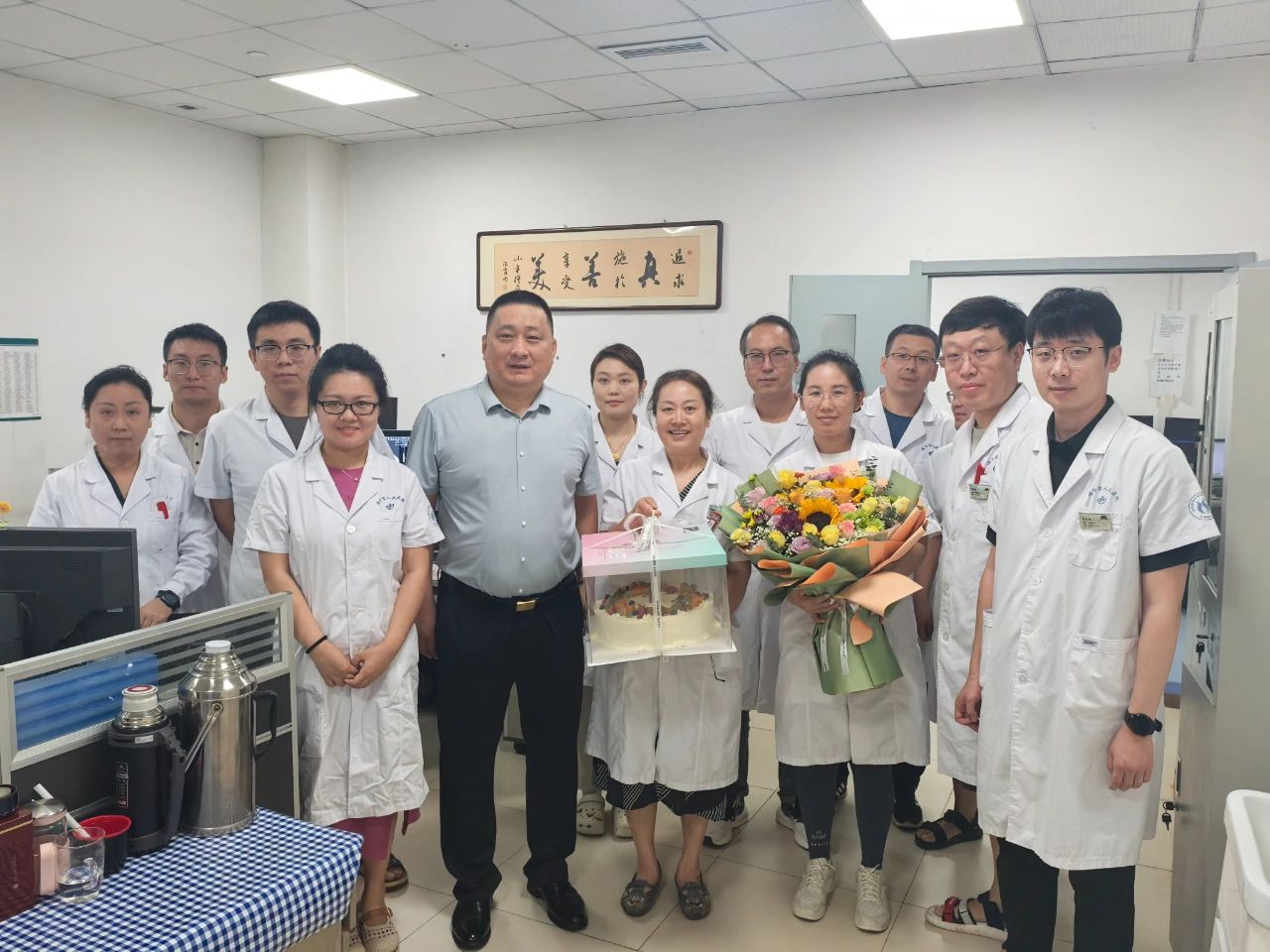 在家的領(lǐng)導(dǎo)班子成員分組率領(lǐng)相關(guān)職能科室負(fù)責(zé)人,帶著飽含敬意與關(guān)懷的“甜蜜禮物”,深入一線科室,向堅(jiān)守在崗位上的醫(yī)務(wù)工作者們致以節(jié)日的慰問(wèn)和崇高的敬意。為大家送上祝福和節(jié)日蛋糕的同時(shí),激勵(lì)大家發(fā)揚(yáng)“德馨于行,技精于勤”的職業(yè)精神,在推進(jìn)醫(yī)學(xué)事業(yè)發(fā)展的道路上繼續(xù)貢獻(xiàn)力量,展現(xiàn)“臨醫(yī)”人的擔(dān)當(dāng)。