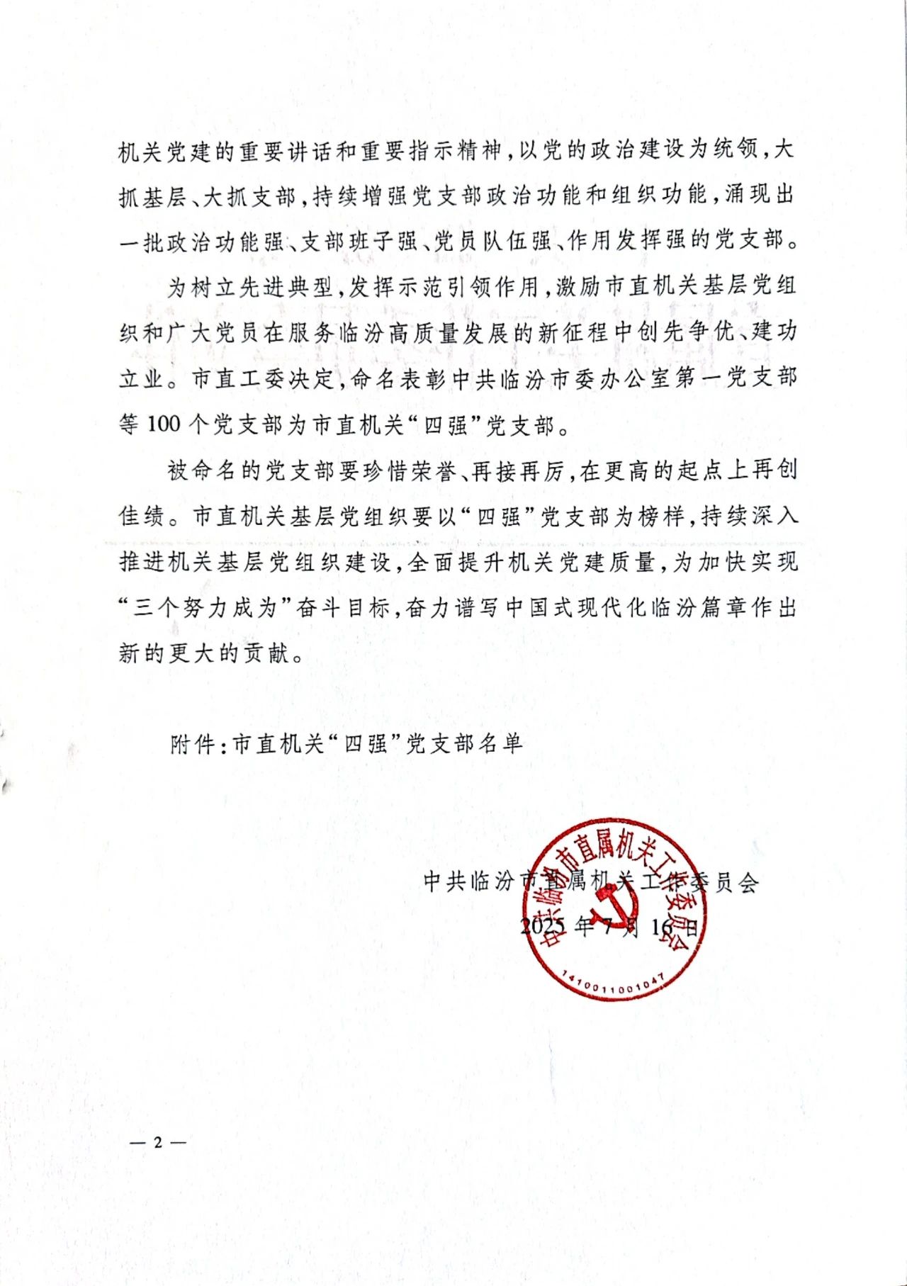 近日,我院普外科黨支部、財(cái)務(wù)運(yùn)行聯(lián)合黨支部、腫瘤中心黨支部被臨汾市直工委命名為“市直機(jī)關(guān)‘四強(qiáng)’黨支部”榮譽(yù)稱(chēng)號(hào)。