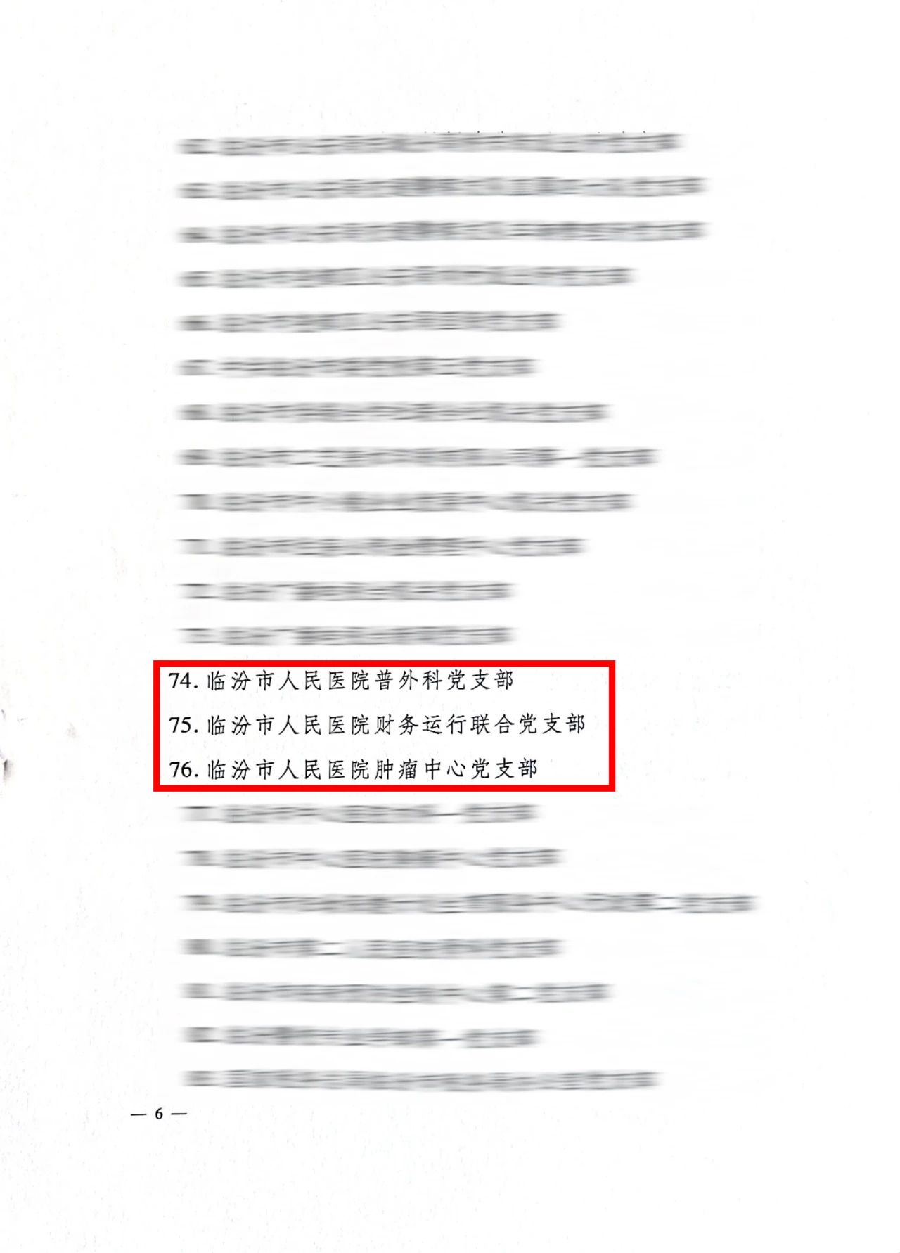 近日,我院普外科黨支部、財(cái)務(wù)運(yùn)行聯(lián)合黨支部、腫瘤中心黨支部被臨汾市直工委命名為“市直機(jī)關(guān)‘四強(qiáng)’黨支部”榮譽(yù)稱號(hào)。