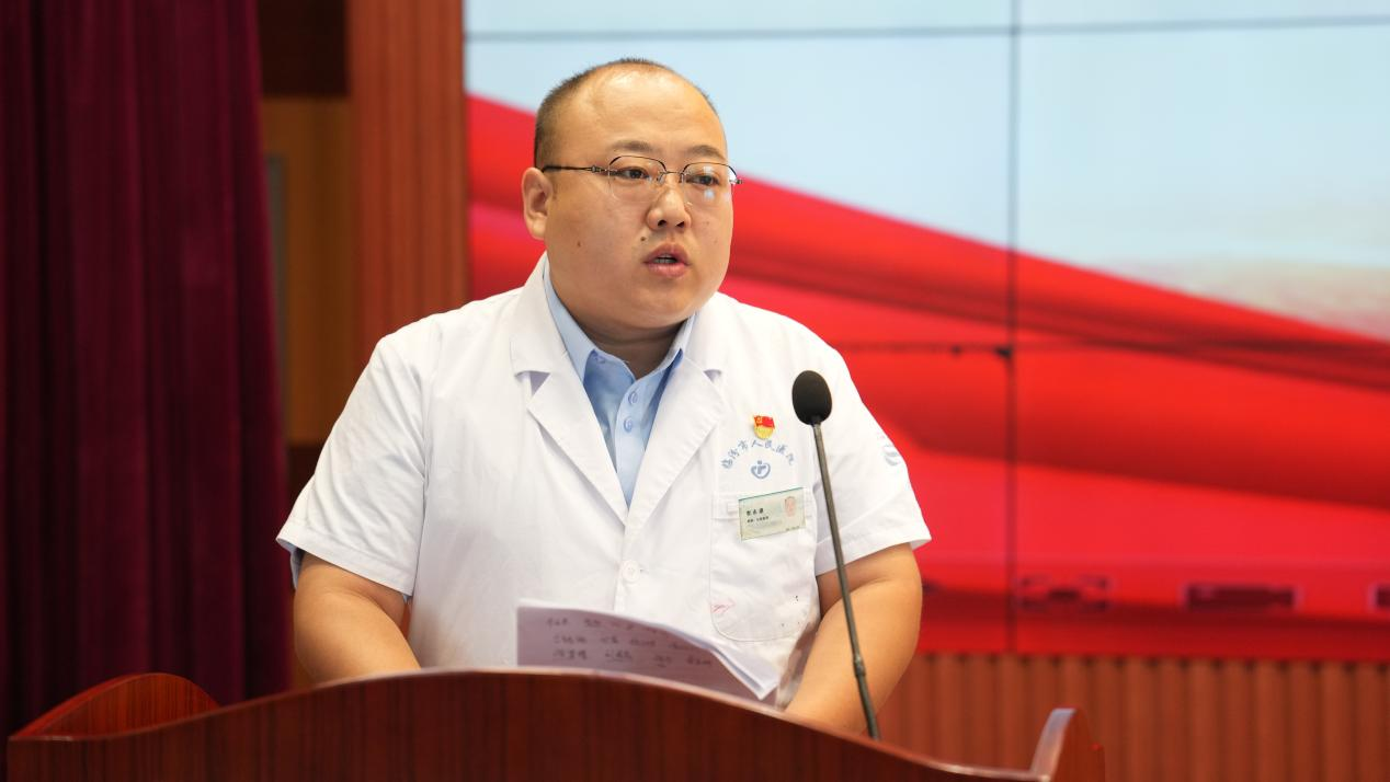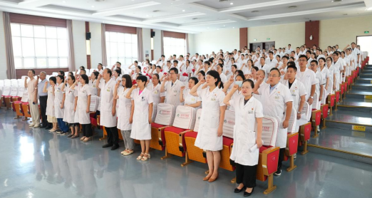景文記帶領(lǐng)全體人員高舉右拳,重溫《中國(guó)醫(yī)師誓詞》——“健康所系,性命相托……”鏗鏘誓言響徹會(huì)場(chǎng),再次堅(jiān)定了全體醫(yī)務(wù)工作者“敬佑生命、救死扶傷”的初心使命。