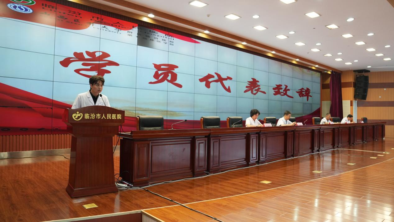 吳春玲主持活動(dòng)并代表醫(yī)院向2022級(jí)學(xué)員順利結(jié)業(yè)表示祝賀,向2025級(jí)新生表示歡迎,并對(duì)長(zhǎng)期奉獻(xiàn)的帶教老師致以崇高敬意。她希望學(xué)員“低下頭苦練技能,抬起頭仰望初心”,努力成為“能看病、看好病、有擔(dān)當(dāng)”的新時(shí)代醫(yī)師。
