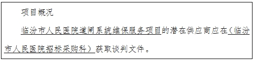項目名稱:臨汾市人民醫(yī)院道閘系統(tǒng)維保服務(wù)項目