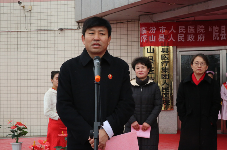 臨汾市衛(wèi)計委主任王山、浮山縣政府縣長廉海平共同為“臨汾市人民醫(yī)院浮山分院”揭牌。