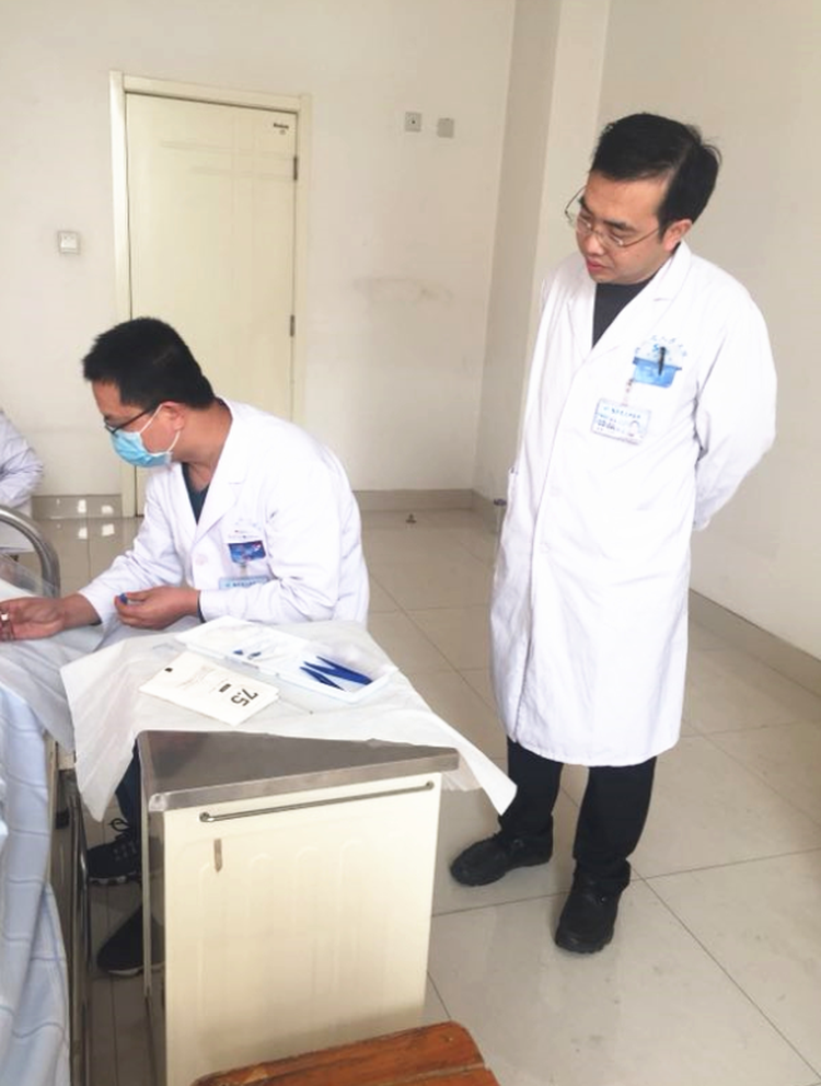 醫(yī)師定期考核是為了加強(qiáng)我院醫(yī)師隊(duì)伍的建設(shè)和管理,通過(guò)考核督促臨床醫(yī)師學(xué)習(xí)、不斷進(jìn)步,以此達(dá)到提高醫(yī)師素質(zhì),保證醫(yī)療質(zhì)量和醫(yī)療安全的目的。醫(yī)師定期考核包括業(yè)務(wù)水平測(cè)評(píng)、工作成績(jī)?cè)u(píng)定和職業(yè)道德評(píng)定。本次考核屬于業(yè)務(wù)水平測(cè)評(píng),主要從體格檢查、腹腔穿刺、胸腔穿刺、骨髓穿刺、腰椎穿刺、心肺復(fù)蘇等基本技能和操作方面對(duì)考生進(jìn)行考核。20余名考官對(duì)年輕醫(yī)師們嚴(yán)格要求,認(rèn)真細(xì)致、對(duì)照標(biāo)準(zhǔn),并現(xiàn)場(chǎng)示范指導(dǎo),讓年輕醫(yī)師們獲益匪淺。
