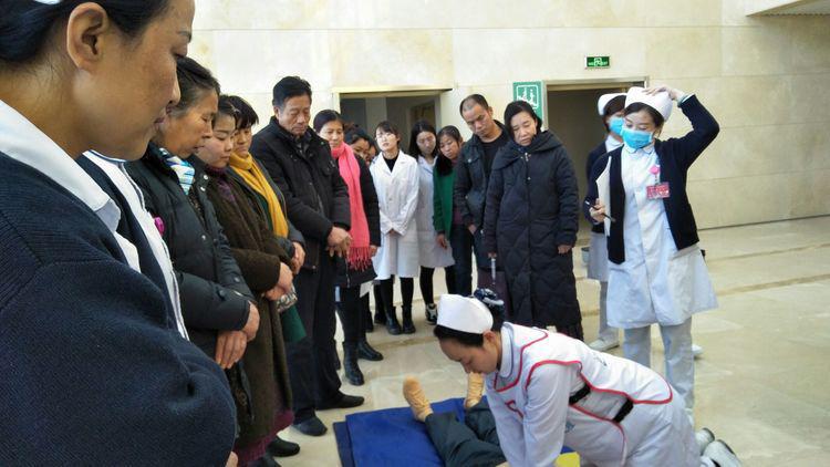 心臟驟停是威脅人類生命安危的急癥,在急救黃金時(shí)間4--6分內(nèi),正確實(shí)施心肺復(fù)蘇能幫助患者恢復(fù)呼吸與心跳,可有效提高患者的存活率,而且可能避免嚴(yán)重后遺癥!2018年1月9日15點(diǎn),我院紅十字護(hù)理志愿服務(wù)一組在趙軍青護(hù)士長的帶領(lǐng)下,在門診3樓康復(fù)科門診開展了"全國心肺復(fù)蘇普及進(jìn)萬家精準(zhǔn)健康工程"活動(dòng),對門診患者及家屬進(jìn)行培訓(xùn)。