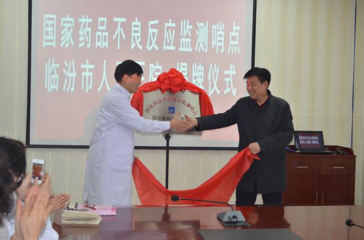 1月16日,“國家藥品不良反應(yīng)監(jiān)測哨點(diǎn)臨汾市人民醫(yī)院揭牌儀式”在我院行政樓二樓大會(huì)議室舉行,我院成為全省第二家、市級(jí)醫(yī)療機(jī)構(gòu)第一家哨點(diǎn)單位。本次會(huì)議由副院長李斌主持。山西省藥品不良反應(yīng)監(jiān)測中心主任趙洪彬、副主任陳奇志、科長段文娟,臨汾市食品藥品監(jiān)督管理局柳紅兵局長、周李平主任,我院院長蘇學(xué)峰出席儀式。醫(yī)務(wù)科、護(hù)理部、藥劑科、計(jì)算機(jī)管理辦公室等相關(guān)人員也參加了本次活動(dòng)。