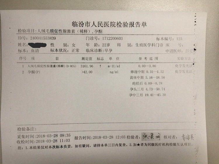 患者完善相關(guān)檢查后,于2017年11月27日在我院行睪丸穿刺示:可見(jiàn)活動(dòng)精子。遂女方進(jìn)入試管周期。于2018年3月10日,女方取卵,男方再次行睪丸穿刺取精,實(shí)驗(yàn)室人員進(jìn)行卵胞漿內(nèi)單精子顯微注射,胚胎培養(yǎng)2-3天后移植入宮腔內(nèi),2018年3月28日,經(jīng)檢驗(yàn),女方成功受孕。